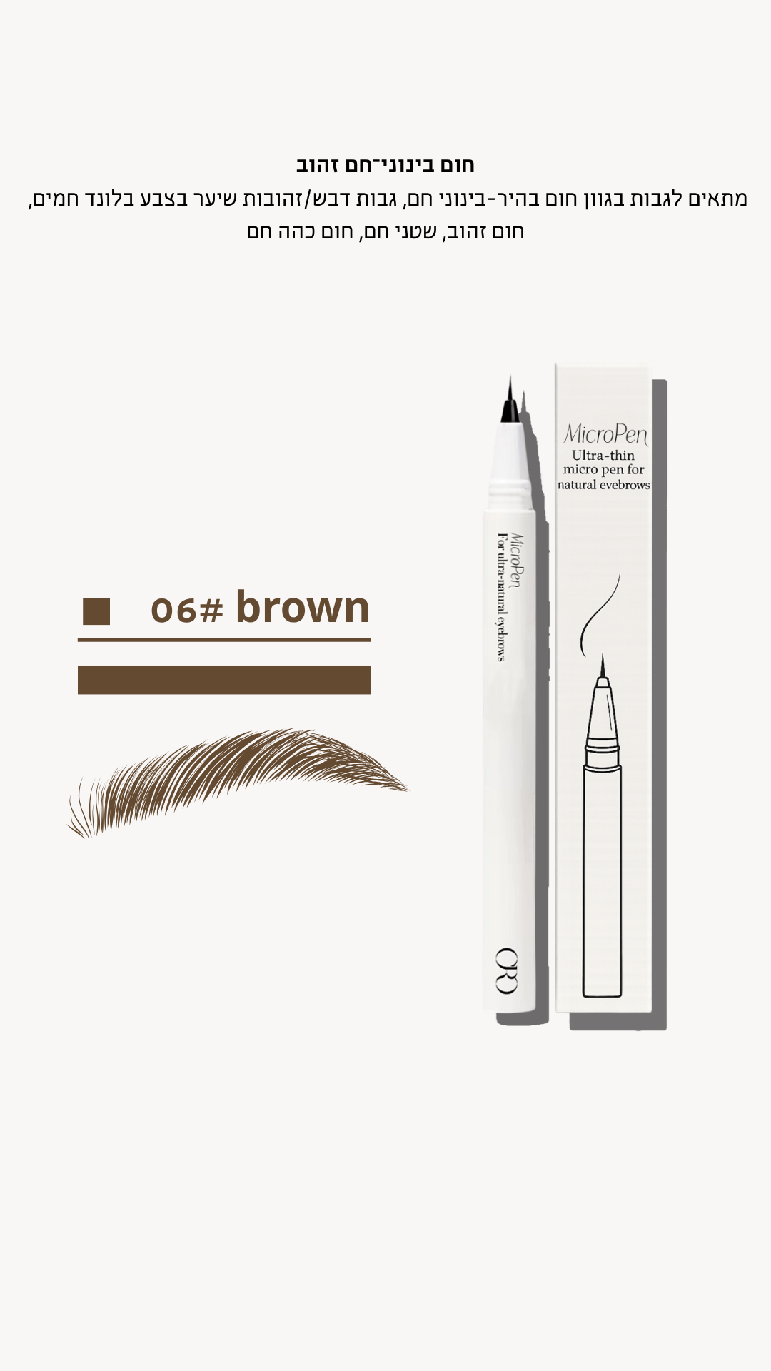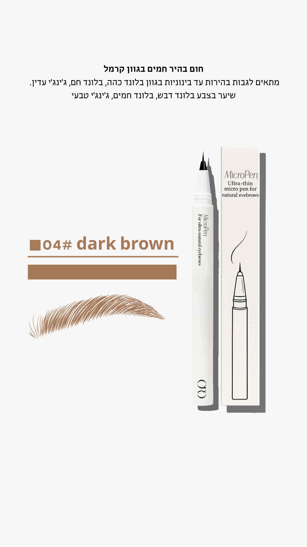 טוש MicroPen לגבות 3 ב-1: גבות, נמשים ואייליינר במוצר אחד. קצה סופר דק, עמיד במים ומגיע במגוון גוונים טבעיים. מושלם למראה מדויק וקליל.